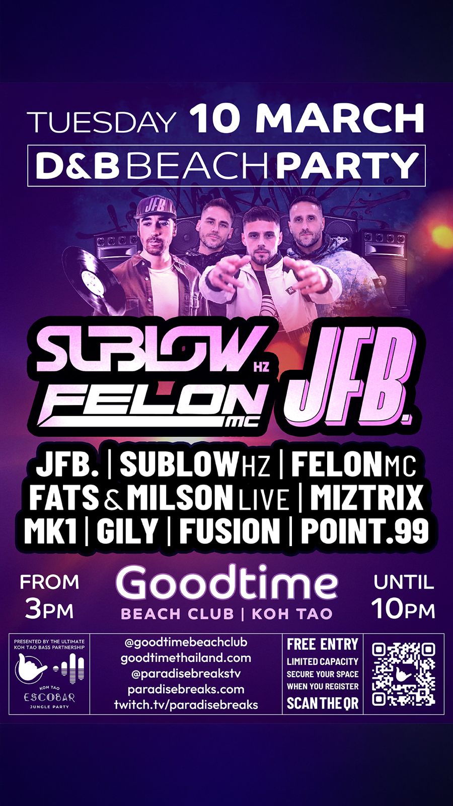 An international Drum & Bass lineup lands on Koh Tao for a special island session at Goodtime.